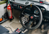 • This Fiat 127 has been fitted with a raft of rally-focused upgrades, including quad Hella Rallye 3000 front spotlights, the removal of the front bumper, bullet-style door mirrors, mud flaps, the removal of the rear bumper, an Alcantara-trimmed dished steering wheel, Corbeau bucket seats, a roll cage, an aluminium passenger foot rest, a Veglia steering column-mounted rev-counter, custom dashboard rocker switches, a kill switch, a passenger map light, Durite water and oil temperature gauges, a front steering guard, a Brantz International Driver Display, a Brantz International 2S Pro rally tripmeter, four-point Corbeau harnesses, a rear seat ‘delete’, and a front strut brace.