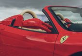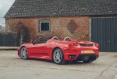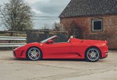 Ferrari F430 Spider F1, First delivered in October 2007 to Dick Lovett Ltd, finished in Rosso Corsa on Crema leather with Bordeaux stitching and Bordeaux carpets, Nero leather dash with red stitching, Electric Daytona seats with Embossed headrests, Giallo Rev Counter, Factory Scuderia wing shields, Carbon driving zone and red brake callipers. Comes with an excellent history file, Ferrari car cover, 2 x original keys & fobs, Toolkit, Schedoni leather wallet and Factory Book Pack, Original Warranty & Service book containing an impressive 14 service stamps. Additionally, the car comes with its original Red VIP Book showing the factory production pictures, presented in its red leather wallet