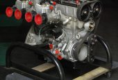 The inline-four BDG was introduced in 1973 for use in multiple racing series and classes, including Formula 2 and Le Mans sports cars. Originally delivered with an iron block, the 1,975cc BDG was later produced with an aluminum block. This is equipped with dual 50mm side-draft Weber carburetors.The twin-cam cylinder head was installed using a new timing belt and gaskets. The water pump and block-mounted distributor were replaced, and a new wire and plug set was installed.The rebuilt engine has not been used in a car and has been covered and stored in climate-controlled race shop.
