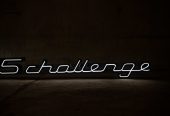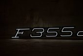 This illuminated Ferrari F355 Challenge sign features numbers and letters constructed of black acrylic, accented by white translucent plastic that's mounted to an aluminium framework. The piece measures 99″ (250cm) wide, 10″ (25cm) tall, and 4″ (10cm) deep, and it incorporates internal LED illumination with 220-volt circuitry and a UK-style wall plug. Presented in excellent condition.