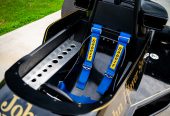 This car’s Lotus 77-style bodywork was originally built for the 2013 film Rush starring Chris Hemsworth and Daniel Brühl as James Hunt and Niki Lauda. Following its acquisition by a private party, the bodywork was fitted over a steel Formula Ford chassis. A Yamaha 600cc motorcycle inline-four engine was also installed and is mated to a six-speed sequential gearbox with a chain-driven rear axle. The car wears a #5 John Player Special livery, and it rides on 13″ centre-lock wheels mounted with staggered racing slicks. Additional equipment includes four-wheel disc brakes with inboard-mounted rears, coilovers, front and rear wings, side pods, a roll hoop, and a Sabelt multi-point harness.