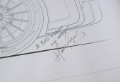 Pagani Huayra Roadster artwork, signed by Horacio Pagani himself. The piece measures approximately 103” x 36”.