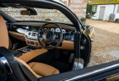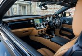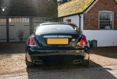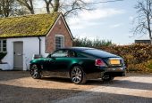 Rolls Royce Wraith, 6.6L V12, hand-crafted in Goodwood, England and first registered in March 2019. Presented in the rare colour combination of Dark-Emerald Metallic (1 of 4 produced in this colour) over Tan leather interior. Features include: reversing camera and top view, ambient interior lighting, lane departure warning, driving assistant plus, side view camera, TV function, night vision with person recognition, Wraith treadplates, black shadow line, RR monogram on all headrests, lambswool floor mats, RR LA forged wheel styling and starlight roof liner to name just a few. This example was recently serviced in October 2025, ensuring a full-service history and Rolls Royce warranty until October 2026. Currently showing 18,440 miles and having just 2 previous owners, this immaculately presented piece of English luxury is ready to be enjoyed by its new owner.